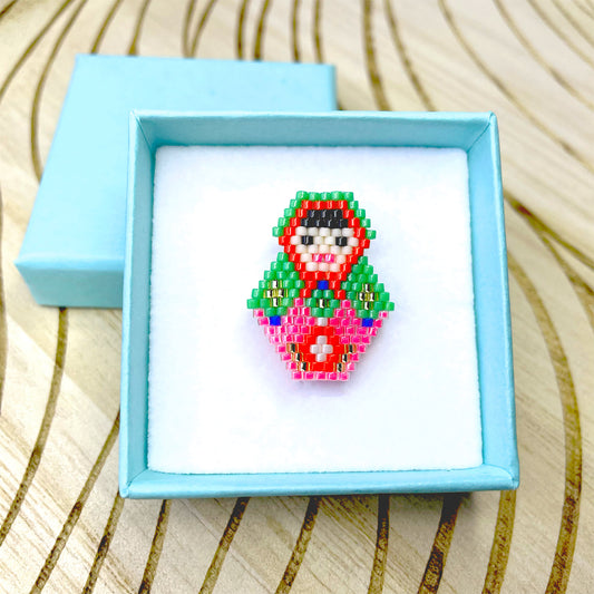 Notre incroyable collection de broches et bracelets KATERINA ajoutera une touche de couleurs, de joie et de style à votre tenue ! Fabriqués avec des perles Miyuki, nos bijoux KATERINA arborent un design unique inspiré des petites poupées Matriochkas.